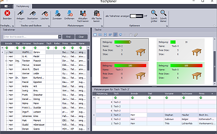 Der entryManager verfügt über einen eigenen Tischplaner, mit dem Sie die Teilnehmer in Ihrer Veranstaltung gekonnt platzieren können.