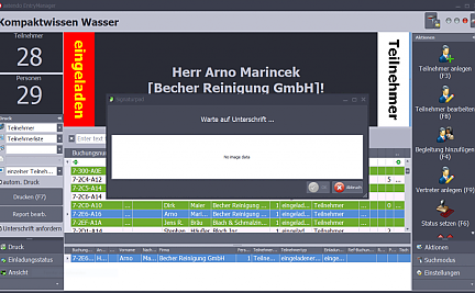 Falls Sie von Ihren Teilnehmern Unterschriften benötigen, können Sie diese während der Akkreditierung über einen Signaturpad einscannen und im entryManager speichern.